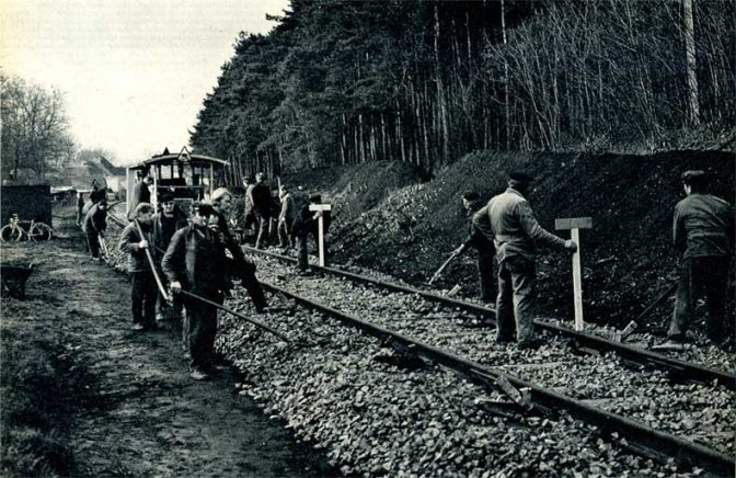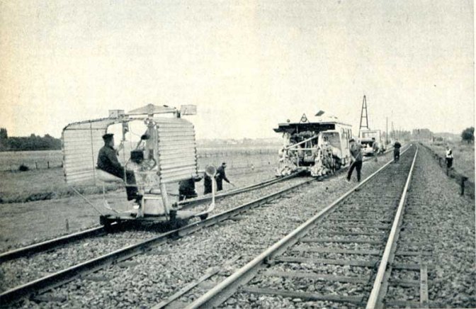 Entre-temps, l’évolution sociale, caractérisée par la diminution des durées de prestation, l’amélioration des conditions de travail et l’augmentation continue du coût de la main-d’œuvre, a entraîné la construction de machines plus importantes, capables d’effectuer à rendement supérieur des opérations particulièrement pénibles pour les poseurs de voie.