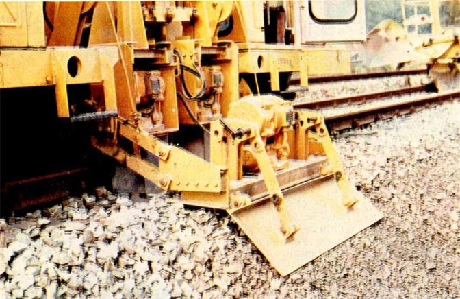 Les « mystérieuses machines jaunes », dont il est question ci-dessus, effectuent principalement des opérations d’entretien et de revision des voies. Mais la mécanisation d’autres travaux, notamment le renouvellement du ballast, s’avéra également souhaitable. Il fut un temps où tout renouvellement de ballast, c’est-à-dire le dégarnissage de la voie, le criblage du ballast et le chargement des déchets sur wagon, s’effectuait intégralement à la fourche. Heureusement ce travail a été confié depuis vingt ans environ à des dégarnisseuses-cribleuses. Une chaîne à raclettes passe en dessous de la voie et amène par l’intermédiaire de bandes transporteuses la totalité du ballast vers le crible, équipé de tamis vibrants.
